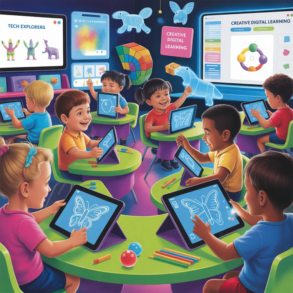 Un curso divertido donde los niños exploran la tecnología para aprender, dibujar, reconocer figuras y animales, y jugar mientras desarrollan su creatividad y habilidades digitales.
